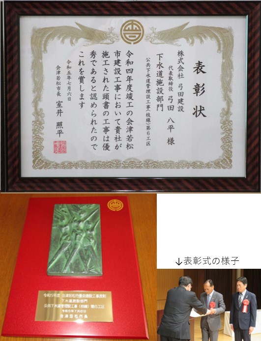 令和5年7月6日に會津稽古堂にて令和5年度会津若松市優良工事表彰式が開催されました。